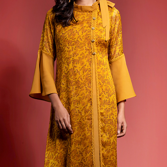The straight silhouette and subtle stitching details keep the look clean and polished, while the bright yellow shade adds a cheerful pop to your wardrobe. The side slits offer easy movement, making it practical for long days.